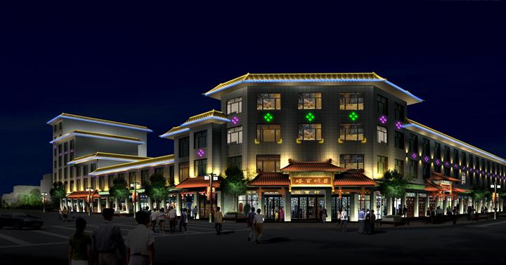 3、根据楼宇的材质不同,建筑风格的不同,采用不同的照明方式、照明灯具展现建筑夜间形象,整体有虚有实。